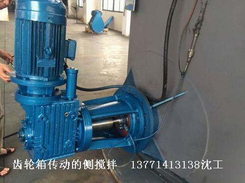 一般在北方地区夜间温度-40℃以下,齿轮传动的侧搅拌器,齿轮箱里面的机油容易冻住,为了不影响使用,需要在齿轮箱上做保温套或者电阻丝加热。机箱的油也要经常更换。另外,侧搅拌器在一段时间不用之后,吸收塔内的沉淀物如果过多,把侧搅拌器的叶片盖住,机器启动的时候突然加速,而叶片却动不了。这样就容易造成侧搅拌器叶片损坏。在塔内损坏搅拌器叶片,这个问题就严重了。如果是用皮带传动的侧搅拌器,当叶片动不了的时候,皮带轮就会打滑。保护了叶片,这个时候可以采取其他措施将沉淀物吸出,再进行搅拌。